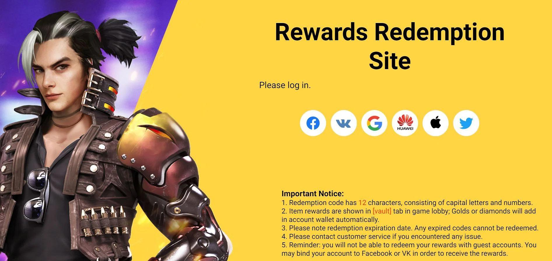 Navigate to the official Free Fire code redemption page.