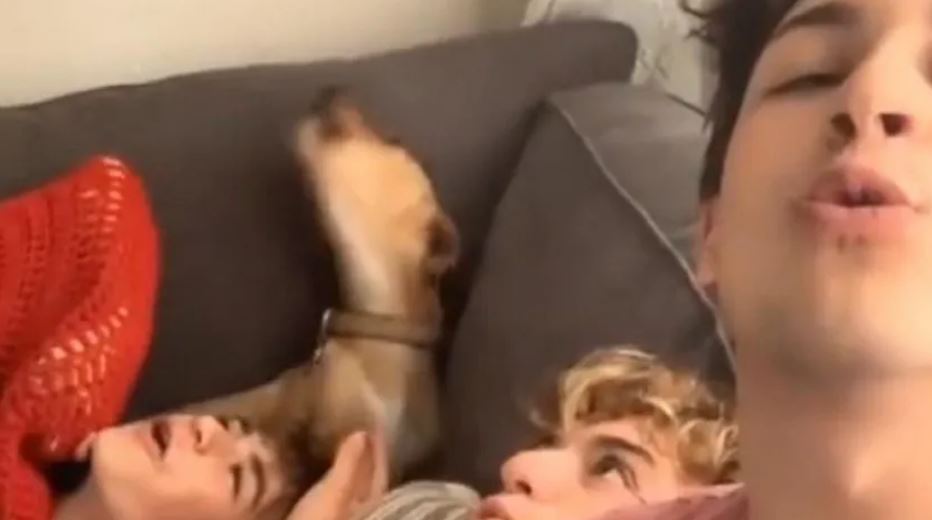 In the short footage we can see the 3 young people sitting on the couch at home, when suddenly one of them starts howling, all while recording with his cell phone and gazing at the camera.